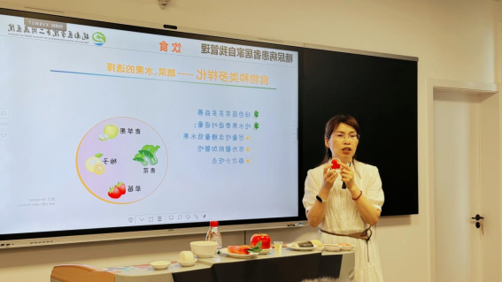 讲座中,文主任化身“健康引路人“,围绕糖尿病的日常监测、饮食控制、运动管理及药物治疗等内容展开讲解。她以临床案例为引,深入浅出地剖析血糖监测的黄金时间点与规范操作流程;手持食物模型等道具,直观演示碳水化合物的合理配比,推荐适合患者的居家运动方式,并针对胰岛素注射技巧等问题进行重点说明。面对听众的提问,文主任逐一耐心解答。
