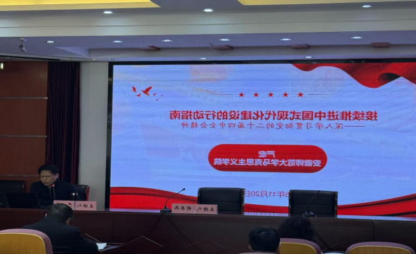 20日上午,安徽师范大学党委委员、马克思主义学院党委书记严宏教授受邀作党的二十届四中全会精神专题辅导报告,他从全会召开的主要概况、核心内容、实践要求等方面进行系统解读,为学校高质量发展提供了理论指引和实践遵循。