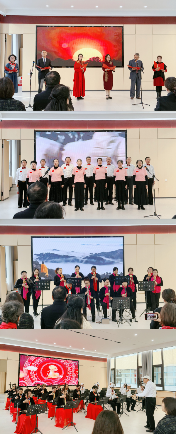 致辞结束后,文艺表演精彩登场。朗诵《秋天里的中国》以深情激昂的语调,描绘出祖国秋日常盛的壮阔图景,赢得现场阵阵掌声;葫芦丝与电吹管合奏《书香家园》旋律悠扬,尽显老年学员的艺术风采;声乐班带来的红歌联唱《志愿军战歌》和《当那一天来临》,唤起现场观众的红色记忆,激昂的歌声传递着不老情怀;二胡独奏《金蛇狂舞》节奏明快、喜庆热烈,将现场气氛推向高潮。