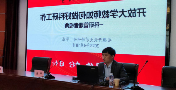 毕磊科长着重介绍了安徽开放大学科研工作的发展历程、主要特点等,分析了当前的科研环境,结合实际分析了青年教师在科研方面存在的问题,并从坚持正确的政治方向和学术导向、提升科研素养、制定科研规划、加强学术交流以及坚守学术道德等五个方面,为青年教师提升科研水平提出策略建议。同时为满足青年教师在科研项目申报、学术成果发表和专业技术职称评审等方面的科研诉求,开展了有针对性的政策解读和能力培训。